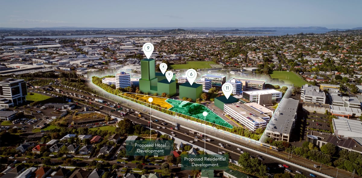 The precinct sits within the ‘Business Park’ zone under the Auckland Council Unitary Plan, which provides a generous planning regime for a multitude of development options with an unlimited GFA cap.